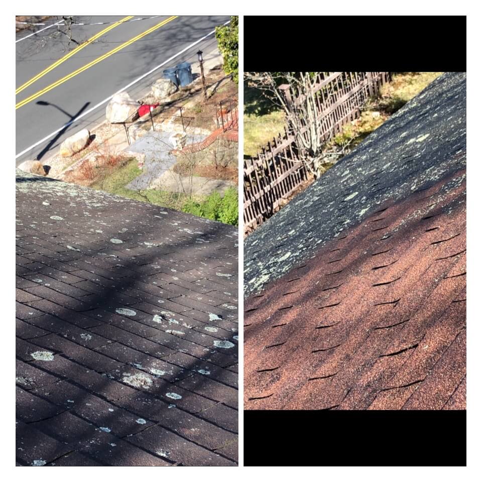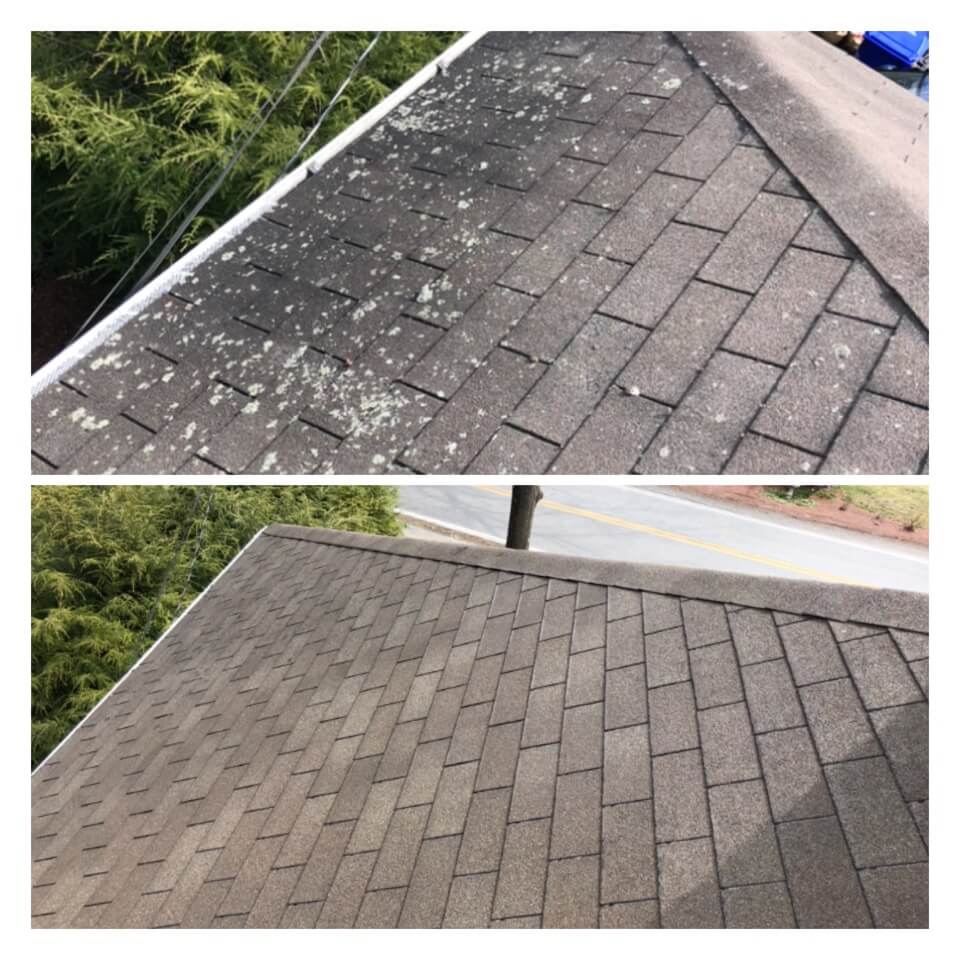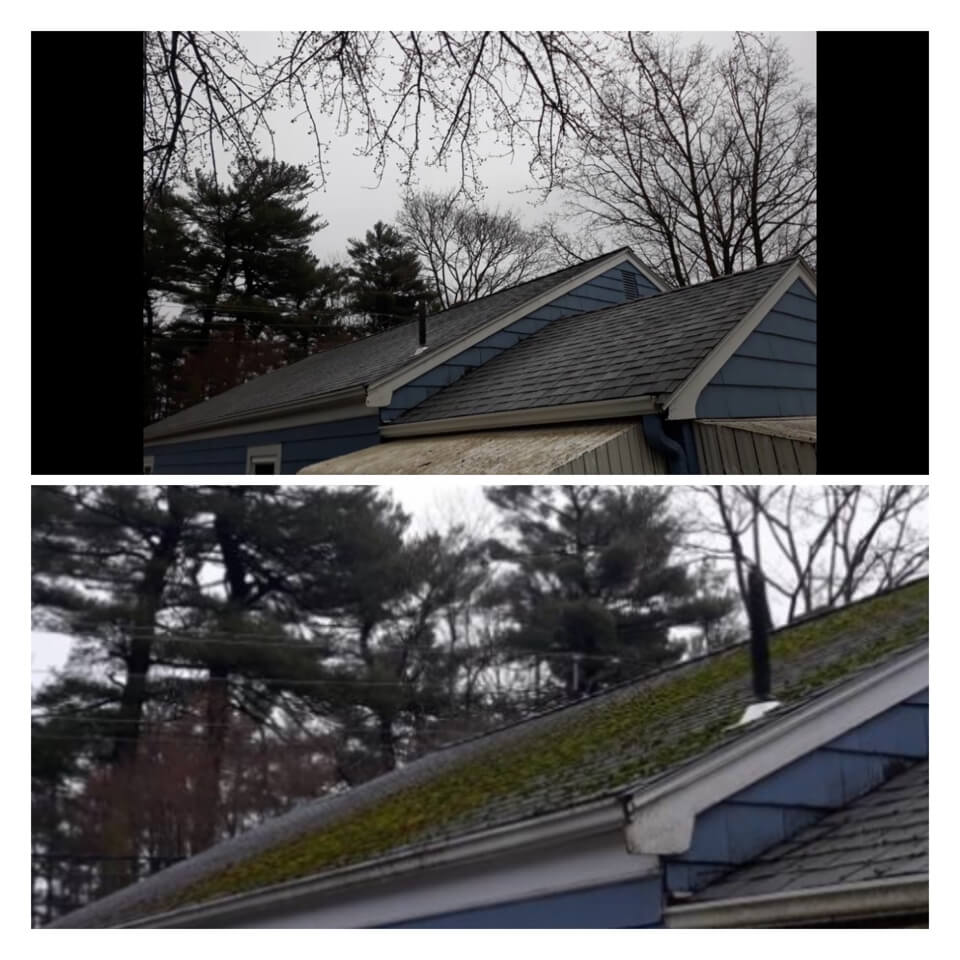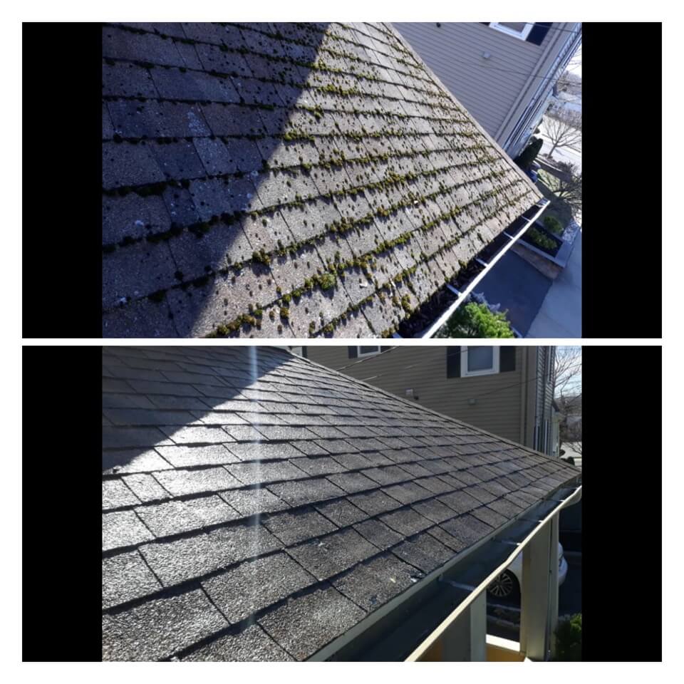 HiCleaners is the most experienced company in Haverhill, MA that deals with roof washing and roof soft washing. All of our employees are trained to recognize precise solution mixing ratios to provide you with the safest and most effective soft washing service. Roofs are a commonly neglected part of a house due to the fact that most people don’t have ladders to access it, so it is very easy to just leave it alone and forget about problems that may start to arise. Just like many home owners, discoloration and small bits of moss on a roof can be overlooked because of the misconception that it is just aesthetic. However, it isn’t just aesthetic, the moss slowly lifts the granules off the shingles which in turn shorten the life of the shingle. The moss also spreads, just like any bacteria if it is left alone for too long, it can quickly become a problem that spirals out of control. Call HiCleaners for a free quote, we only use the most advanced eco-friendly solutions and equipment to make sure the job is done right, for the safety of the employees, your plants, grass, pets, and children.