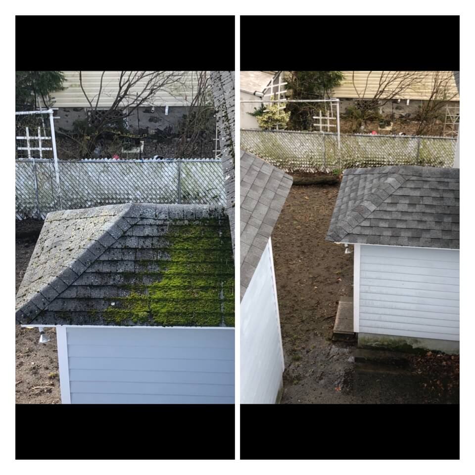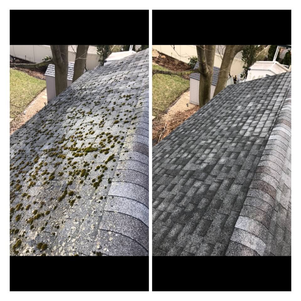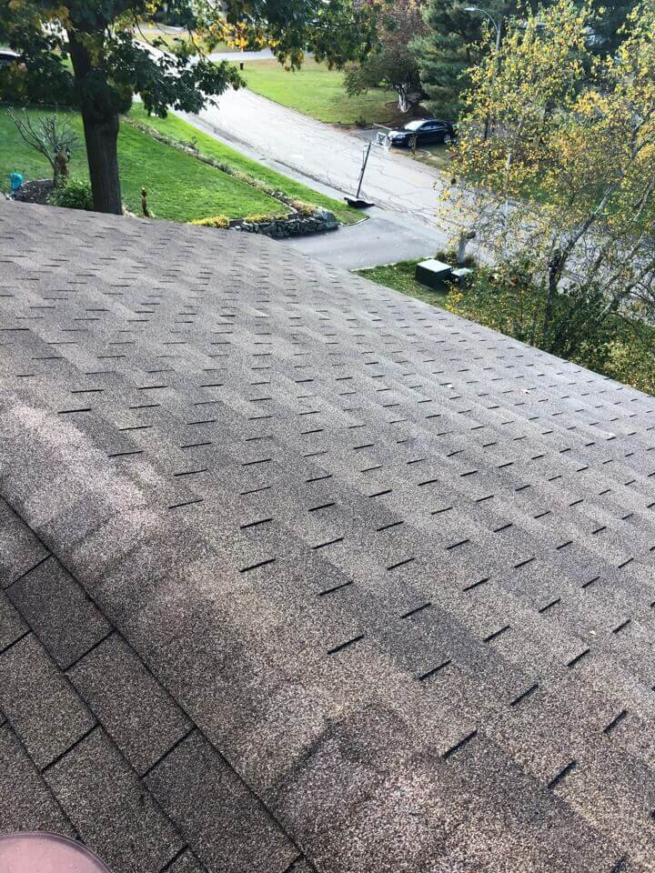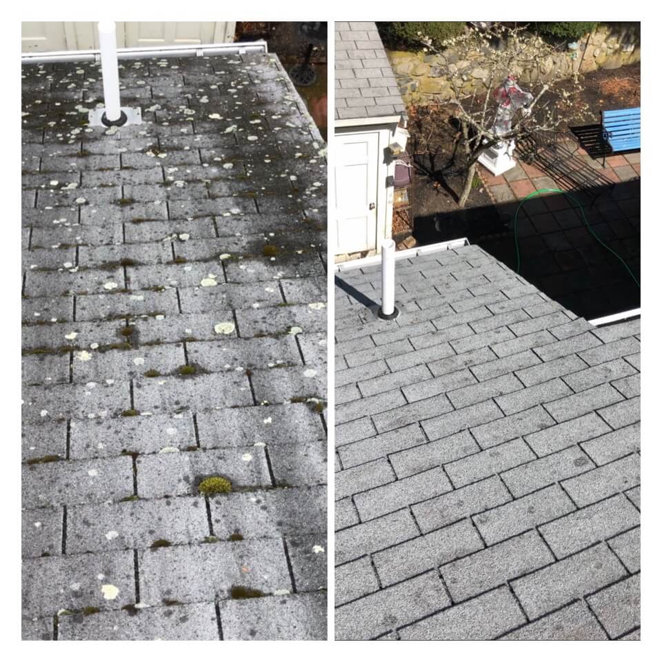 HiCleaners is the most experienced company in Haverhill, MA that deals with roof washing and roof soft washing. All of our employees are trained to recognize precise solution mixing ratios to provide you with the safest and most effective soft washing service. Roofs are a commonly neglected part of a house due to the fact that most people don’t have ladders to access it, so it is very easy to just leave it alone and forget about problems that may start to arise. Just like many home owners, discoloration and small bits of moss on a roof can be overlooked because of the misconception that it is just aesthetic. However, it isn’t just aesthetic, the moss slowly lifts the granules off the shingles which in turn shorten the life of the shingle. The moss also spreads, just like any bacteria if it is left alone for too long, it can quickly become a problem that spirals out of control. Call HiCleaners for a free quote, we only use the most advanced eco-friendly solutions and equipment to make sure the job is done right, for the safety of the employees, your plants, grass, pets, and children.